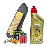 - Kit de revisión de 2 litros Castrol Power 1 10W40, 1 filtro de aceite HifloFiltro HF141, 1 filtro de aire Nypso 100602411, 1 bujía NGK CPR9EA-9